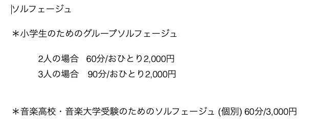 またソルフェージュでは、音名で歌うことを始め楽譜の読み書きやリズムの学習などを通して、音楽を理解し表現するための基礎的な訓練を行います。すべての音楽に共通して役立つこの能力を養うことで、より豊かな演奏へとつなげます。レッスンではそのほかに初見訓練や音楽史も取り入れ、音楽をさらに深く理解する手法を身につけます。